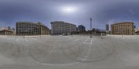 A clear sky over a Los Angeles parking deck, showcasing urban open spaces. The blend of classic architecture and concrete roads exemplifies California's city character.