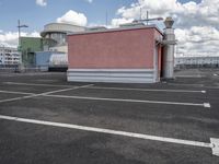This is an image of a modern residential building in the city of Berlin, Germany. The architecture of the building is characterized by its clean lines and contemporary design. The clear sky above highlights the facade of the building, while the asphalt road and parking deck create an urban feel. The image captures the urban design and city life of Berlin, showcasing the modern architecture and open spaces. The roof and road surface provide contrasting textures, adding depth to the composition. This photo represents a typical day in the city and embodies the charm of urban living in Europe.