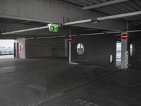 A modern parking garage in Berlin, Germany. The concrete structure and open spaces reflect the city's urban design. The absence of doors and designated parking spots adds an artistic touch. A typical day in Europe's architectural hub.