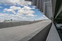 This stock photo showcases a parking garage located in Toronto, Canada. The garage is filled with numerous parked vehicles and features overhangs that provide convenient access to the nearby highway. The image captures a day scene with clouds in the sky. The garage is situated in a suburban area with residential buildings in the background. The concrete structure of the parking garage is visible, along with the entry and exit points. The photo also highlights the highway entrance and exit ramps, inclines, and slopes leading to and from the highway. This image perfectly represents urban infrastructure and transportation in Toronto, Canada.