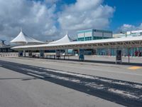 This image showcases a white terminal in Miami Beach, Florida. The terminal is located on a road by the coastline, with the beautiful Miami Beach harbor in the background. The clear blue sky and fluffy white clouds create a serene atmosphere. This photo captures a typical day in Miami, where visitors can enjoy the stunning ocean views and the vibrant coastal atmosphere. Whether it's for travel or leisure, the Miami Beach pier serves as a gateway to an unforgettable experience in the United States.