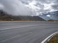 This is an image of a rural road in Austria with a scenic mountain landscape in the background. The asphalt road curves through the picturesque European countryside, surrounded by nature. The clear sky and fluffy clouds add to the beauty of the landscape. This photo captures a peaceful day in Austria, showcasing the stunning mix of mountainous terrain and rural roads.