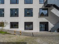 A modern courtyard in Porto, Portugal, featuring sleek architecture and cobblestone surface. The clear sky adds to the open space vibe. Urban setting in Europe with a hint of traditional Hinterhof charm.