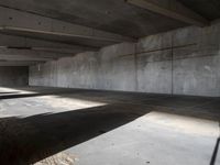 An urban parking garage in Porto, Portugal. The concrete structure features multiple levels with open spaces. Natural light casts shadows on the floor and walls, creating a unique architectural aesthetic.