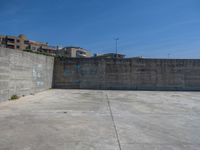 Clear sky over Porto, Portugal's coastal area. Concrete walls line the beach, creating an open space for ocean views. The serene coastline offers a peaceful day by the water.