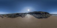a panoramic view shows some very nice water and rocks and rocks on the beach