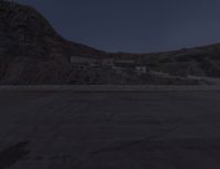 a view of the desert from an overlook with a moon in the sky and a building visible