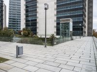 A modern business district in Lisbon, Portugal. High-rise office buildings line the streets, accompanied by street lights and urban design elements. The cityscape blends modern architecture with green spaces, creating a vibrant urban environment.