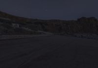 A stunning view of the coastal landscape of Portugal at night. The dark silhouette of the mountains contrasts with the tints and shades in the sky. The open space is illuminated by the clear night sky and the sparkling ocean.