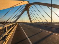 the bridge is empty except for traffic to pass over at night time with bright sunlight