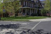 the suburban street and residential homes are empty of people, due to the presence of nature