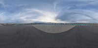 the 360 - view camera shows the ground and mountains in the background as clouds move overhead