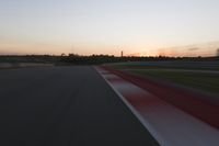 Race Track at Dawn: An Automobile Speeds Along the Line