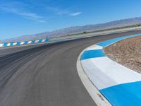 A race track in the USA, featuring an asphalt road curving under a clear sky. This is the perfect place for a day of high-speed racing and thrilling competitions.
