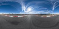 a fisheye lens view of a race track with a very long, curved strip