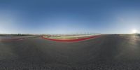 a wide view of a racetrack from a fisheye lens for a sports camera lens