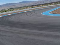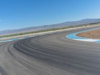 A race track in the USA on a clear day. The smooth curves of the asphalt road provide the perfect setting for an exhilarating race. Get ready for an adrenaline-fueled day of racing!