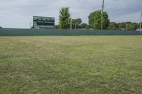 A baseball field in Bancroft, Iowa. The grass surface and open space provide a perfect location for sports and recreational activities. The grey sky adds a dramatic touch to the scene.