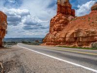 Scenic Byway 12 in Utah, a road that winds through breathtaking landscapes. Red rock mountains contrast against the clear blue sky. A perfect day to explore the beauty of nature along this iconic road.