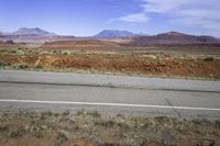 a wide open road running through a desert landscape near mountains and rocks by the side