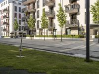 This is an image of a modern residential building in Hamburg, Germany. The architecture reflects the urban design and contemporary style of the city. The building is located in a vibrant neighborhood, surrounded by other apartment buildings and public spaces. The image shows the lively city life and the blend of residential and mixed-use properties in the area. The surface of the building is sleek and stylish, adding to the modern aesthetic. This photo represents the dynamic and thriving urban environment of Hamburg, a city in Europe.