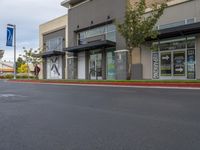 a road is empty at a retail store in this neighborhood's urban area of an outside business
