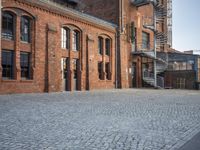 This is an image of a cityscape in Berlin, Germany. The architecture and infrastructure of the city are highlighted, including the various residential buildings, apartments, and houses. The photo showcases the character of the neighborhood, with its brickwork, iron details, and cobblestone alleyways. Open spaces and public areas are also featured, adding to the urban charm. The clear sky and contrails in the background provide a bright and vibrant atmosphere. This photo represents a typical day in Berlin, showcasing the city's unique blend of history, culture, and modernity.