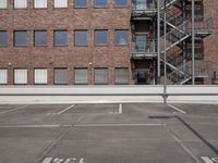 This image captures an urban scene in Berlin, Germany. The clear sky overhead highlights the city's architecture, including the façades and windows of residential buildings. In the foreground is an empty parking lot with stairs leading up to the buildings. No parking signs are visible, indicating the property is for residents only. The asphalt road and open spaces create a dynamic setting. This photo showcases a typical day in a Berlin neighborhood, where real estate and condominiums are prominent. The image represents the urban charm and liveliness of the city.