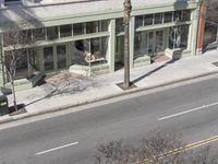 A view of a city street lined with tall buildings and residential houses. The road surface is made of smooth asphalt, with walkways and driveways. Cars and vehicles can be seen parked along the curb. Urban architecture at its finest.
