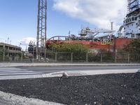 A sunny day in Tenerife, Spain. The view showcases the unique architecture of the residential area with its winding roads and asphalt surfaces. The urban landscape is complemented by the presence of factories and industrial infrastructure. Clouds form a picturesque backdrop.