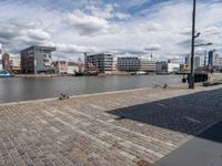 This image showcases the modern architecture and urban design of Bremen, Germany. The photo captures a clear sky and a view of the city's residential area with high-rise buildings and modern architecture. The road surface, paved with asphalt and cobblestones, leads to the water where a pier and jetty can be seen. Boats dot the harbor while street lights illuminate the urban landscape. This photo encapsulates the vibrant city life and European charm of Bremen, Germany.