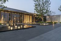 A modern residential building in Shanghai, China. The sleek facade and rooftop lights create a stunning architectural design. The courtyard and plaza serve as a popular tourist attraction. This property is the perfect blend of art and functionality.