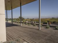 A modern residential home in Los Angeles, California. The concrete architecture contrasts with the vibrant green grass and trees in the landscape. The open floor plan and large windows create a bright and inviting interior design. The backyard features a stone wall and a spacious deck with a terrace overlooking the valley.