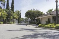 This stock photo features a charming residential neighborhood located in Los Angeles, California. The image showcases the beautiful residential architecture and palm trees lining the middle of the street, creating a picturesque scene on a sunny day. The road, made of smooth asphalt, leads through the tranquil neighborhood, where various residential buildings and homes can be seen. This idyllic residential area is surrounded by lush greenery, including trees and hills, adding to the overall appeal of the estate. The photo perfectly captures the essence of suburban living in the vibrant city of Los Angeles, known for its real estate and prestigious neighborhoods like Beverly Hills and Bel Air.