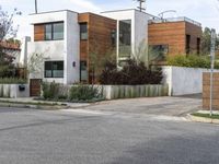 This is an image of a residential area in Los Angeles, California, USA. The photo showcases the architecture of suburban homes and villas. The houses have well-maintained facades and driveways, surrounded by asphalt roads and suburban landscaping. The clear sky with clouds adds to the idyllic atmosphere of the neighborhood. This image captures the essence of residential living in Los Angeles, a city known for its diverse real estate options and suburban charm.