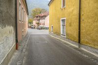 This image captures a classic architecture in a suburban neighborhood. The yellow house stands out against the cobblestone road and the surrounding residential properties. The well-maintained infrastructure and road surface create a pleasant thoroughfare for residents. The bright yellow wall of the house adds a pop of color to the scene. This photo represents a typical day in a residential town with beautiful architecture and a well-connected road network.