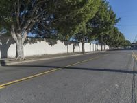 A clear sky day in Los Angeles, California. Residential roads lined with trees and woody plants create a peaceful suburban atmosphere. The asphalt road surfaces lead to the bustling city center, showcasing the urban infrastructure.