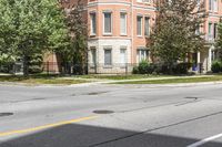 This stock photo features a charming residential street in Toronto, Canada. The image showcases the architecture of the buildings, with a blue fire hydrant on the curb and sidewalk. The road is made of asphalt, leading through a peaceful suburban neighborhood. The day is bright, with trees lining the lane. The scene captures the essence of urban living in this vibrant Canadian town.