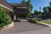 This is an image of a suburban neighborhood in Toronto, Canada. The photo is taken from a straight down view of the road, showing rows of residential houses on either side. It is a sunny day with a clear sky overhead. The surface of the road is visible, as well as the surrounding suburban landscape. This photo represents a typical day in a residential area in Toronto, capturing the essence of suburban living in Canada.