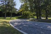 A scenic road in New Zealand's South Island, surrounded by lush forests and green grass. The clear sky and sunlight create a stunning landscape. A perfect day to explore the natural beauty of this public space.