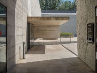A straight road in Barcelona with modern architecture on either side. The clear sky casts hard shadows on the concrete walls, creating a dynamic urban design. Experience the vibrant city life of Barcelona, Spain.