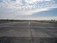 A straight road in Berlin, Germany, leading towards an open space with an asphalt road surface. The cityscape is visible in the background, with clear skies and a nearby lake. This aerial view captures the urban design of the city, with a stadium and sports facilities in the vicinity. The road resembles a runway at an airfield, symbolizing the concept of air travel and transportation. The landscape showcases the natural environment and water resources surrounding the city. The road's tar surface and the clear horizon add to the aesthetics of this picturesque scene.