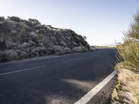 A scenic road in Spain with a clear sky and beautiful landscape. The asphalt road is surrounded by mountains, trees, and a desert. The road surface is well-maintained with lane markings and a shoulder. This highway is an important infrastructure that connects different parts of the region. The photo was taken during the day in Tenerife, Europe.