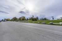 This stock photo features a road in a suburban area of Toronto, Ontario, Canada. The road is surrounded by residential houses and is covered with different road surfaces such as asphalt, gravel, and dirt. The landscape includes nature elements like trees and rocks. The image was taken during the day under a grey sky. The photo showcases the infrastructure and thoroughfare within this residential area of Toronto.