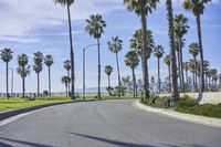 This image captures the scenic view of a road in Los Angeles, California, USA. The asphalt road runs through a coastal area with sand and residential buildings on both sides. The day is clear and the sky is free of clouds. Nature thrives with trees and vegetation lining the road, providing a beautiful and serene backdrop. In the distance, the road leads to the ocean, creating a picturesque coastal landscape. The infrastructure includes lanes and highways that connect this recreational area to the rest of the city. Palm trees and Arecales add a touch of tropical charm to this rural shore scene.