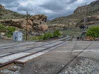 A scenic view of a road in Utah, with mountains in the background. The road cuts through the landscape, surrounded by nature and clouds. A perfect day to explore the beauty of the Utah landscape.
