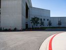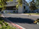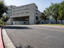 A sunny day in Los Angeles, California showcases suburban roads lined with modern architecture under a clear sky. Asphalt roads weave through the campus, highlighting the city's modern suburban landscape.