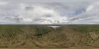 Rugged Brandenburg landscape with a sky dome. Open space surrounded by greenery and forest. Grey sky adds drama to the scene, highlighting the unique location in Germany.