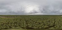 Rugged Brandenburg landscape featuring a sky dome and open spaces. Grey skies over forest and grass surfaces. Germany's natural beauty on a cloudy day.