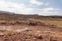 High and rugged desert landscape in Utah, USA. Red rock formations and desert canyons showcase the Earth's erosion. Clear day provides elevated views of the rocky ground and surrounding mountains.